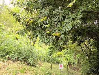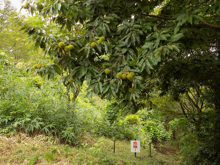 それでは、下山続行です。危険箇所の石段に向かっておりますと、頭上に栗が…