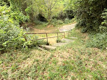 途中に大佐山古墳群に登っていく道があります。今まで大佐山には2度歩いて行っているけど、こんなとこに車で通れる道があったのか。これではナビでもないと(あっても)分かるわけないな。もう行くことはないだろうけど、今頃見つかってもな。