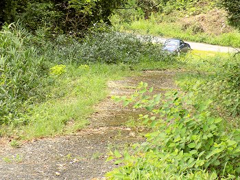 車から出まして確認しますけど、う〜ん、これでは、とても離合は不可能ですねぇ(^-^;