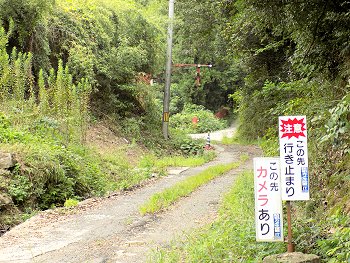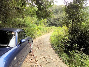 ここは、多少、道幅が広いのですけど、車が擦れ違い可能なスペースでもありませんけど、多分、上からも下からも、車はヤッて来ないものと勝手に判断のGONsan。気持ちだけ案内表示板側に車を寄せて下車。