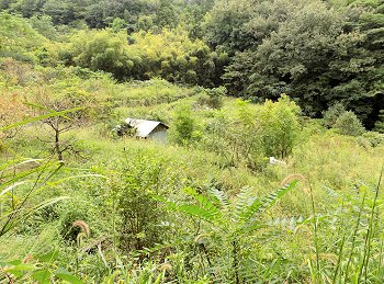 仕方なく暫く上がって行きますと、山道の傍らに農作業されます方の農機具小屋なのでしょうねぇ〜小さな建物が見えて来まして、その横に車1台がヤッと駐車可能なスペースが…