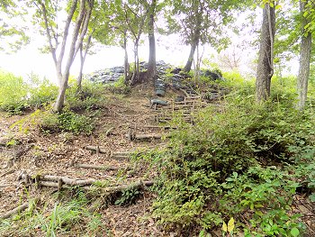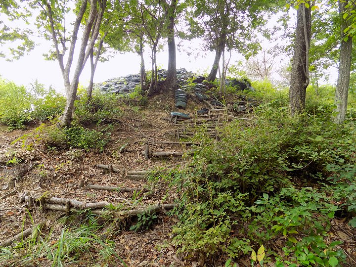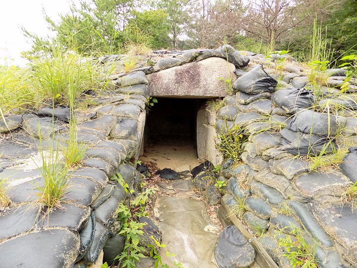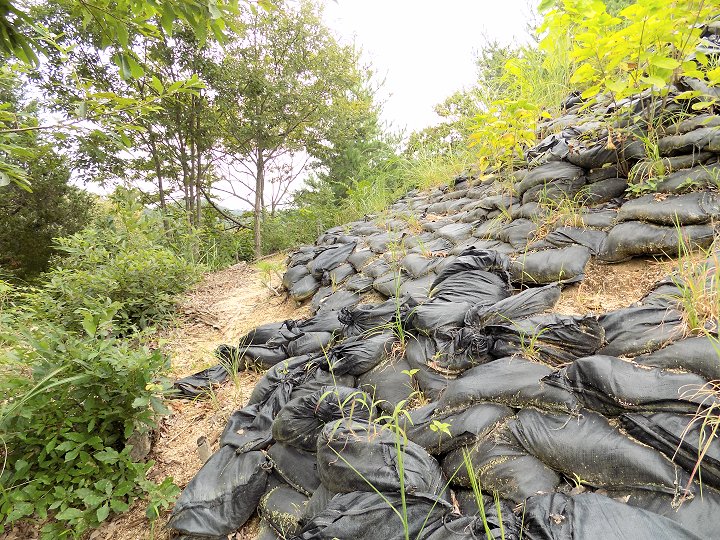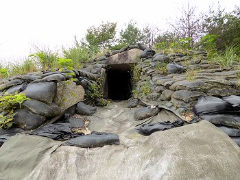 仕方なく、南側から土嚢を上がって行きますと、うん、うん、下からは見えませんでした石室への入口が(^_^)v