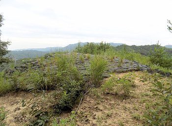 取りあえずは奥の尾根筋を捜索、すぐ破壊されたような石室っぽいのがあったがさすがにこれじゃない、痕跡道もあったのでたどってみたが石室見つからず。諦めて帰ろうかなと思いましたがもう一ヶ所の尾根を探そうと近づいてみたら人が入ったような痕跡がある、これはと思って入って行ったら案の定石室がありました。南に開口した細長い石室無袖式かな、奥壁は1枚石、左右側壁も上に重ね石が殆ど無い1枚石を並べられています。切り石状石室だそうです。産廃が本格的に稼働し始めると見学困難になるのでしょうか。産廃入り口まで車で通行可。
