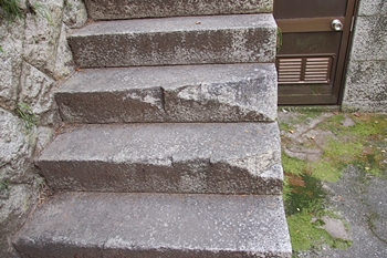 急いで参道を下り追い付きますと、福山城の崖を利用した防空壕の跡ですネ。
