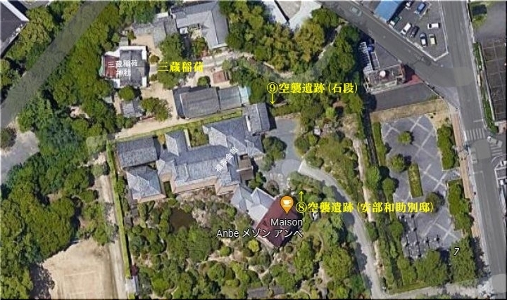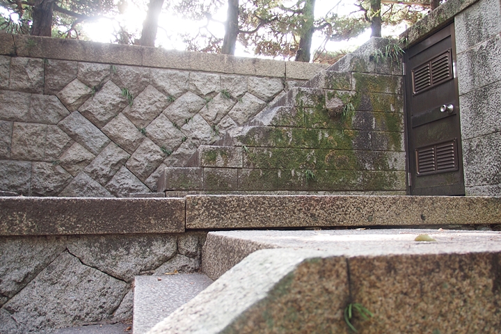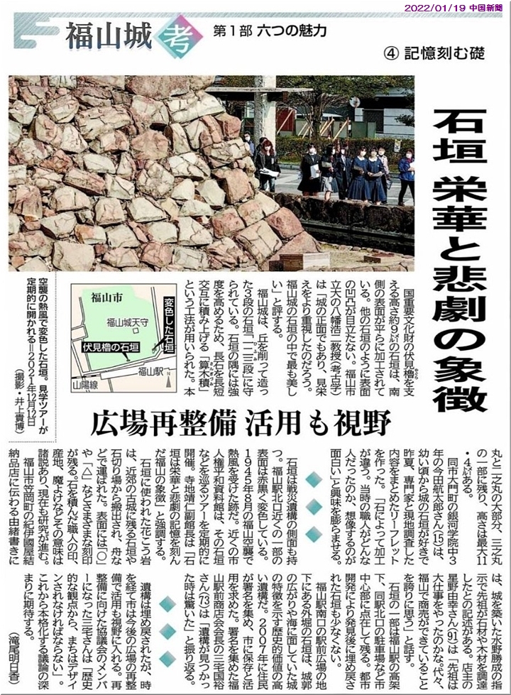 空襲で破壊された玄関跡や破損した石段、炎で変色した石垣などを拝見後、安部和助別邸(福寿会館)とお別れしますと、三蔵稲荷の参道を抜け、福山城公園の北側にと向かいます(^.-)☆