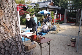 境内では氏子の皆様が、忙しそうに年末・年始の準備中でありました。この様子を何枚かパチリ。初詣客をお迎えする準備も大変ですねぇ〜