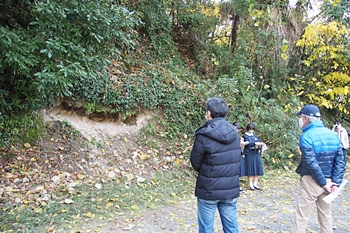 この防空壕は、近隣の人々が共同で造り、身を守るために利用していたそうです。現在は、崩落の危険があるために埋め戻されています。