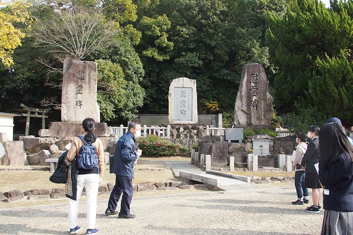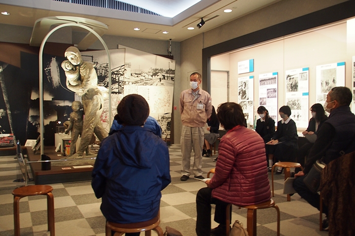 慰霊碑前での、当時の悲惨なお話しが終わりますと、今回の「ピースウォーク」もオシマイで、福山市人権平和資料館にと戻って来ますと、館長さんの閉会のご挨拶となりました(^-^)//"