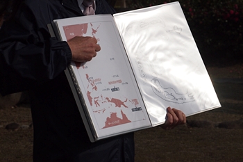 慰霊碑の前では、太平洋戦争当時の「メレヨン島」の悲惨な状況のお話しがありました。