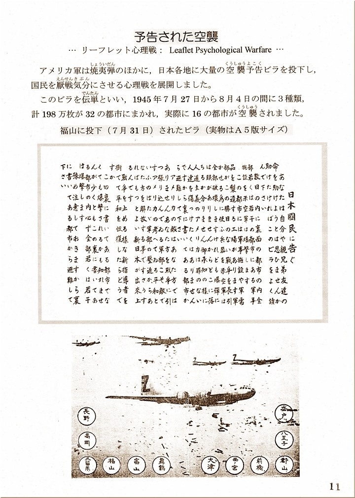 福山市人権平和資料館から退散時に、希望者に配布された何枚かの資料の中に、「アメリカ軍資料に見る福山空襲」がありましたけど、仲々興味深い内容でありました。