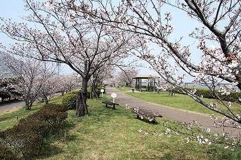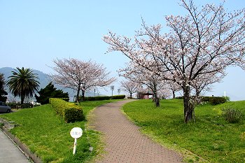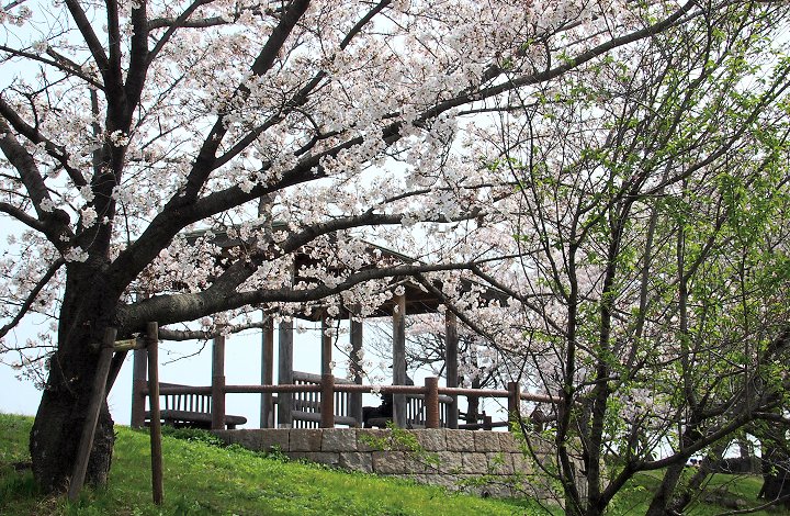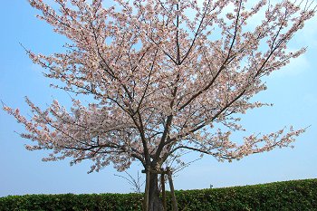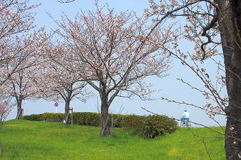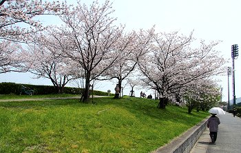 サクラ並木は、市民球場を目前にしました南端で終わりますけど、この場所はウォーキングロードのスタート地点でもあります。ですから、ウォーキングロードに沿ってサクラ並木が存在しています事になるでしょうか(^-^)