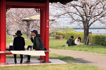 月曜日ですから、花見客もおられませんでノンビリとサクラを楽しめる…こんな想いがありましたけど、う〜ん、意に反しまして、それなりに花見客はおられましたネ(^_^)v