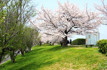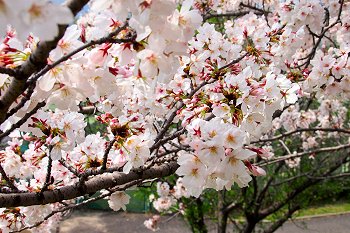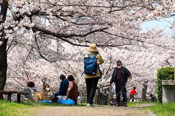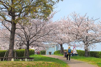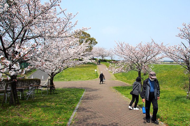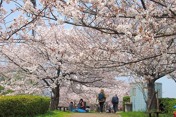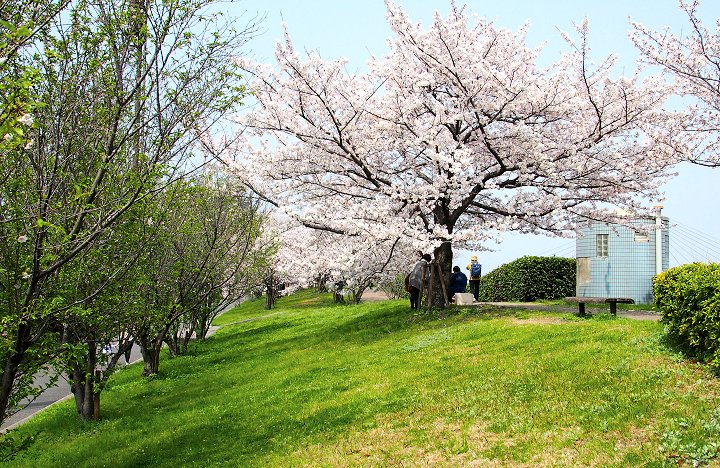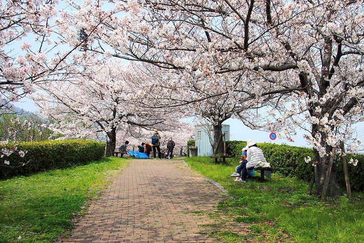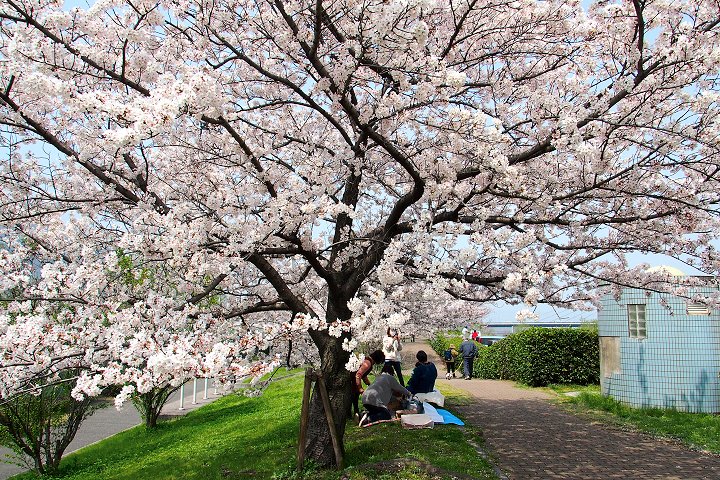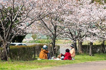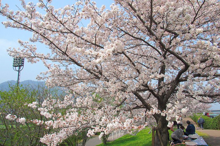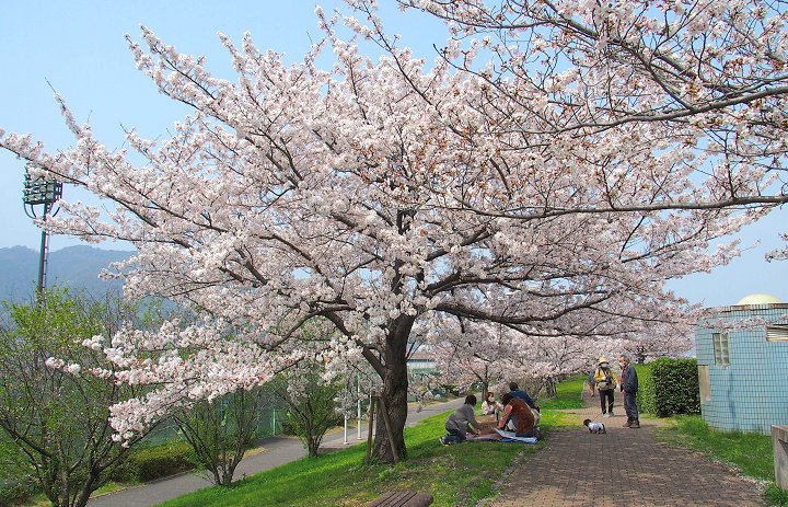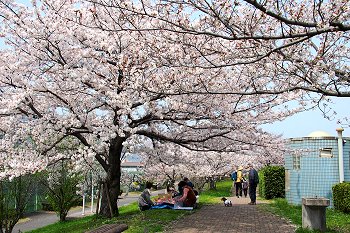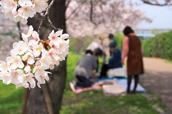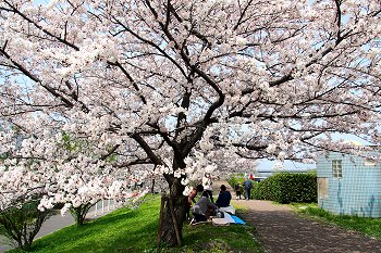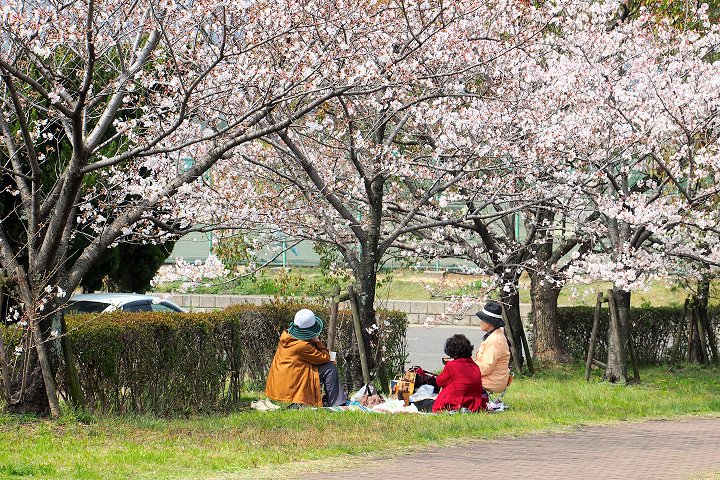 7〜8分咲きのサクラの下では、少人数で弁当を広げておられます方々が楽しそうに…満開状態でしたらもっと楽しく過ごされますのでしょうけど(^-^)