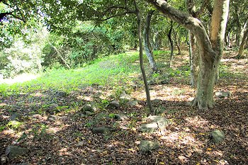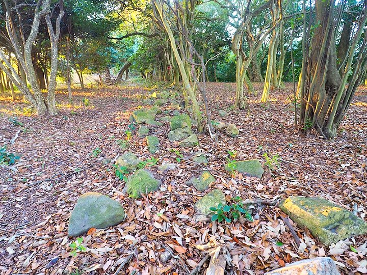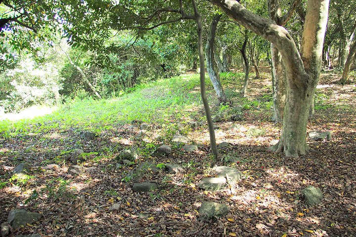 「三の丸」にも、中央部には南北に長く2列に並んだ石列が残っておりますけど、何故、このような石列が存在しますのかは不明のようであります(^-^)/"