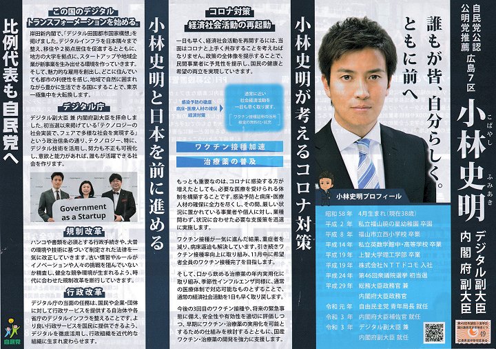 2021年・第49回衆議院議員総選挙の広島県第7区…小林史明san、余裕で4選が決まりましたネ(^.-)☆