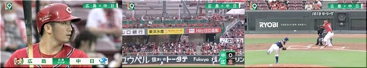 9回裏 -- 広島 4番 鈴木 誠也 二死1,3塁 1塁 西川 →代走:上本 ランナー1,3塁の0-2からセンターへのタイムリーヒット 広5-7中 1,2塁