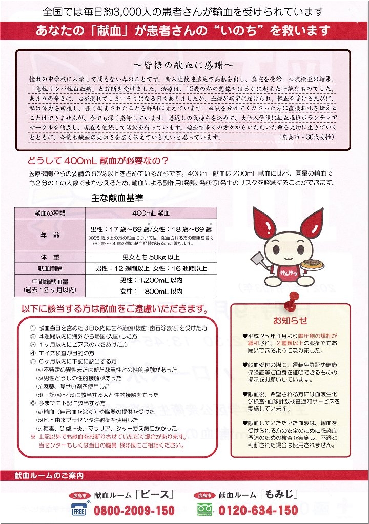 今日もまた、この献血協力へのチラシを手に、複雑な気持ちを生じますGONsanなんであります。