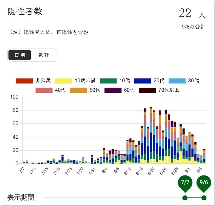 9/6(月)、2717〜2738例目となる22人の感染者が確認されました。