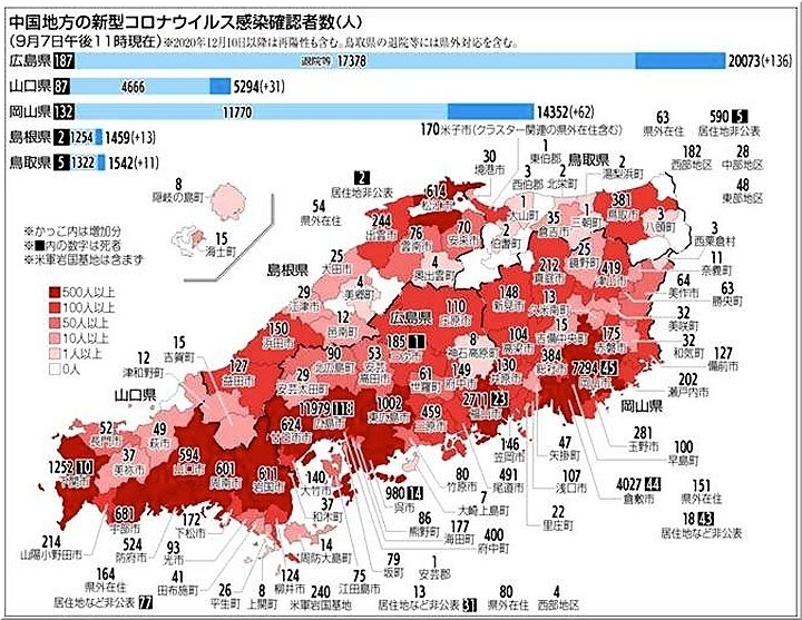 9/9(木)の福山市の発表では、「8月に本市職員の新型コロナウイルスの感染が相次いで確認され、2つの職場でクラスターが発生しました。現在は疫学調査も終わり、市役所内でのクラスターは収束しました。」との事で、市役所の二つの職場でのクラスターは収束しましたようですけど、今朝の中国新聞sanの朝刊では、「福山市は、市内の学校でクラスター発生…」との記事掲載がありました。う〜ん、どちらの学校なんでしょうねぇ〜