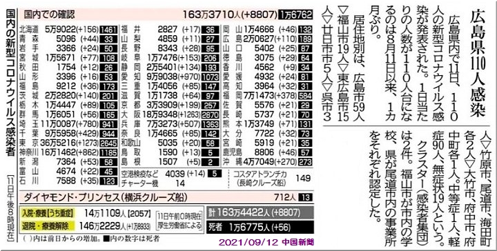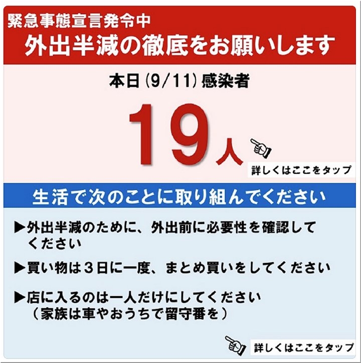 …と、こんな状況ですけど、広島県は、9/11・9/12を大型店に休業要請、国に対し緊急事態延長を要請の意向のようですネ。