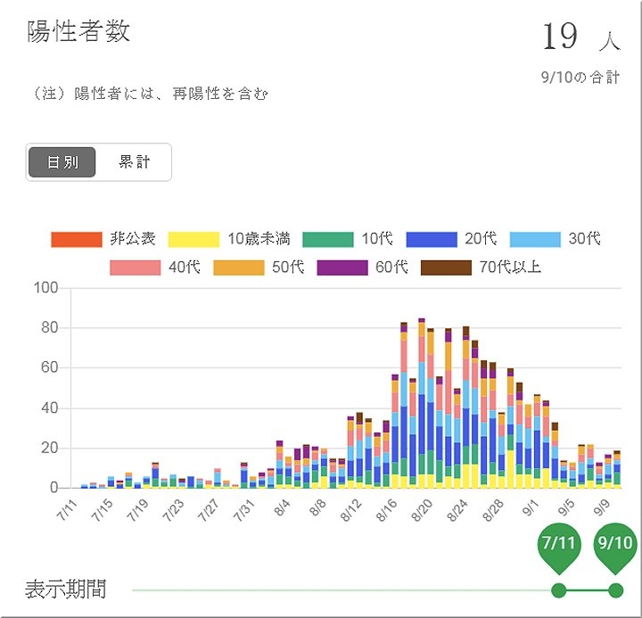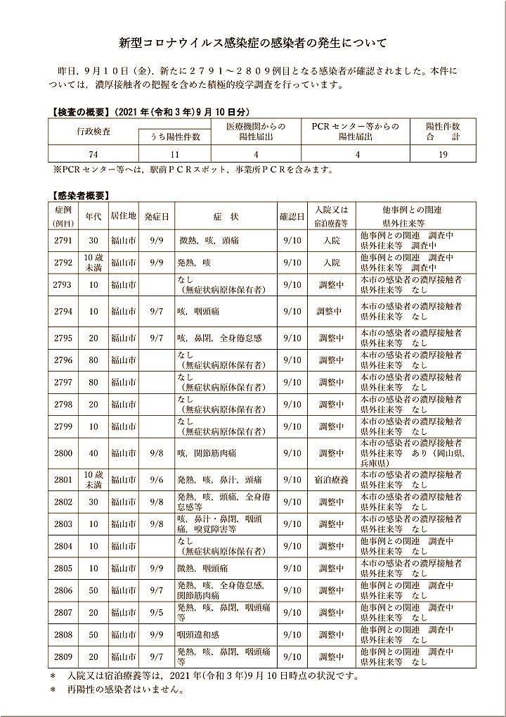 9/10(金)、2791〜2809例目となる19人の感染者が確認されました。