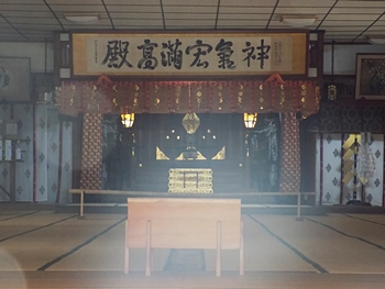 終戦により、昭和20年9月19日、開祖は28年間住み慣れた釜山を引き上げ大神様を捧持し大勢の家族と共に九州の唐津に上陸しました。その地で“中国は笠の地に斎き祀れ”と云う御神示を受け、中国地方の笠岡を大神様の鎮まれる永遠の御聖地と定められました。
