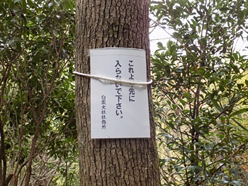 こっちの道を進めば「応神山」に行けるのかも…とも思いますけど、樹木には『これより先に入らないで下さい。白雲大社社務所』の注意書きが(^-^)構わず進んでみたい衝動に駆られますが、断念です。