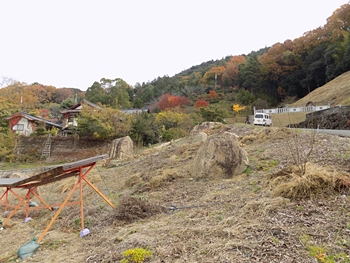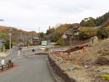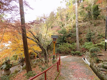紅葉を楽しみます散策スタート時点でも、この掃き集められました落葉には気付いておりましたけど、鳥居側から眼にしまして初めて「ハート形」に集めておられますのに気付きましたねぇ(^-^)