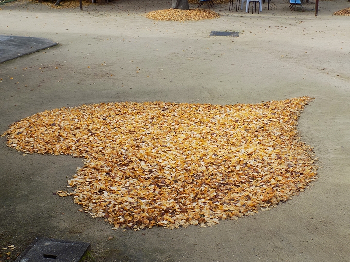 で、眼に入りましたのが、キレイに掃き集められましたこの落葉…思わず笑ってしまいましたネ(^_^)v