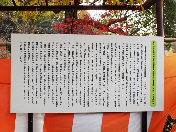 そして、境内の一角には、『東北地方太平洋沖地震に関する天皇陛下のおことば』が…