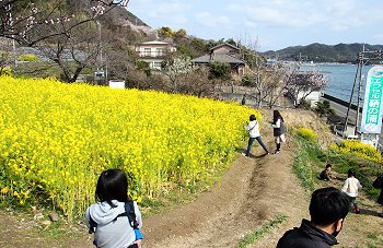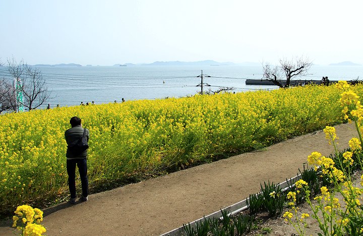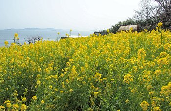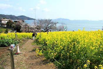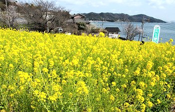 今、田尻町(十三仏一帯)で菜の花が咲き始めています。瀬戸内海をバックに約150,000本の菜の花が見る人を魅了します♪