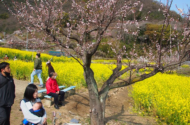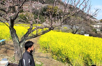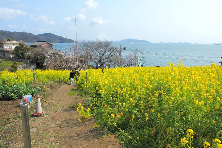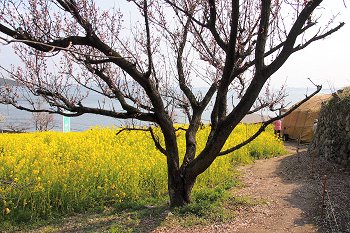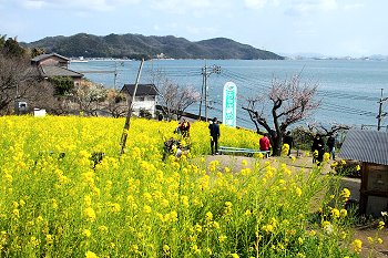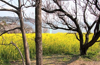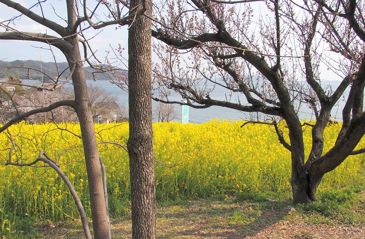 ★梅の香が漂う菜の花畑は、瀬戸内海を背景に