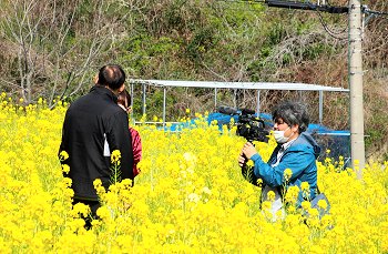 菜の花畑の一角では、どちらのテレビ局なのでしょう…取材しておられましたネ(^-^)//"