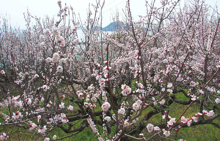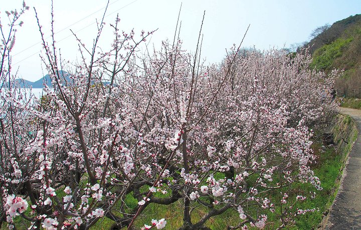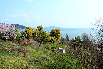 2月の終わりころから咲き始める梅の花と一緒に見る瀬戸内海は、なんとも優美です。