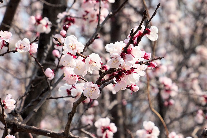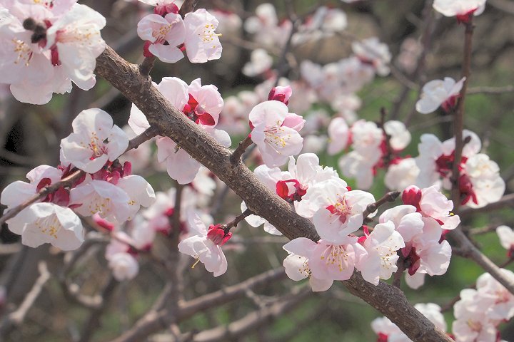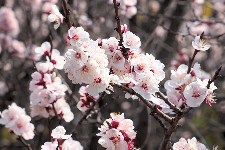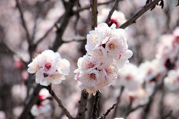 ここは、「杏品種比較試験地」に次いで杏の花が充分楽しめます。満開の時期は少し過ぎてはいましたけど、大変キレイでありました。サクラと比べ、多少華やかさに欠けます杏の花。とは言いましても、満開状態ですと、サクラ同様に実にキレイ\(^o^)/