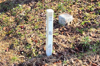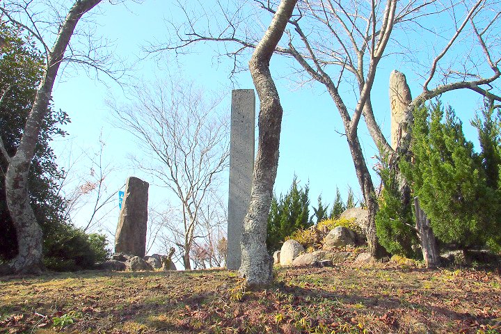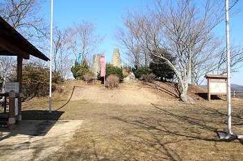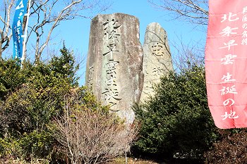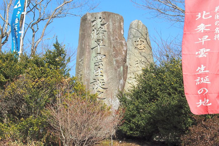 山頂にと上がって来ますと、中央部に「北条早雲生誕の地」の石碑が存在です。