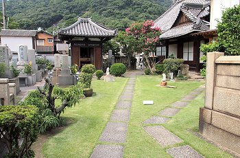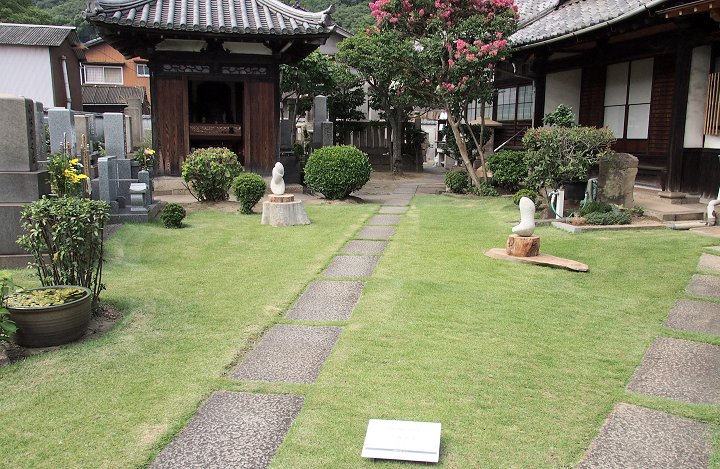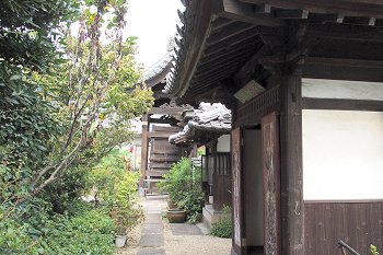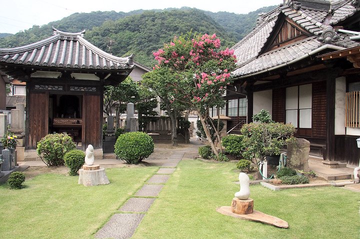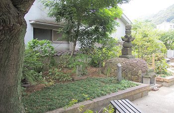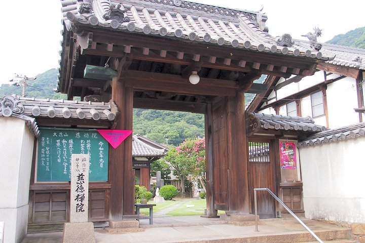 慈徳院の山門は、寺伝によると昭和17年ごろに再建されたものだといいます。この山門は薬医門の形式をとっており、屋根には立派な鬼瓦が見られます。その山門をくぐると、ふわりとした空気が流れる静かなお庭が迎えてくれます。四季折々で表情を変えるお寺さんのお庭、鞆っこにとっての癒しの空間です。