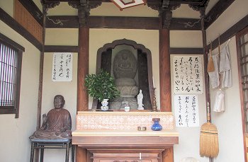 突然の訪問者に驚くことなく、静かな笑みを浮かべている。観心行に興味があることを伝えると、本堂に招き入れてくれた。