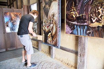ここでは、外人sanが絵画の展示を…安国寺で貰いましたパンフレットを確認してみますと、「Tyler Stenlund」sanの絵画の展示でありました。