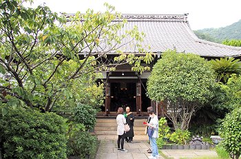 迎えるのは福々しい笑顔の副住職。鞆の浦の「寺町通り」に建つ日蓮宗のお寺、壽福山顕政寺(じゅふくざんけんしょうじ)。