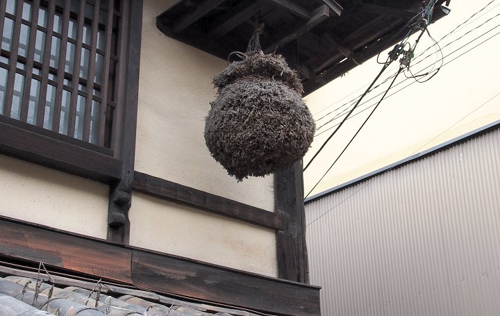 外に出まして屋根下に眼を移しますと、杉玉が(^-^)