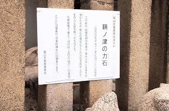 鞆は海運の発展と共に栄えた港町。かつては多くの仲仕が船積荷物の陸揚げや積み込みなどに従事していました。重たい荷物を肩に担ぎ、積み荷を運んだ力自慢の仲仕達は祭礼の場などで、力石を使ってその力と技を競いあったようです。差し上げた石には名前が刻まれ、神社に奉納もされました。鞆の津には「東濱・港濱・西濱」の仲仕組合があり、互いに競い合っていたことが知られています。
