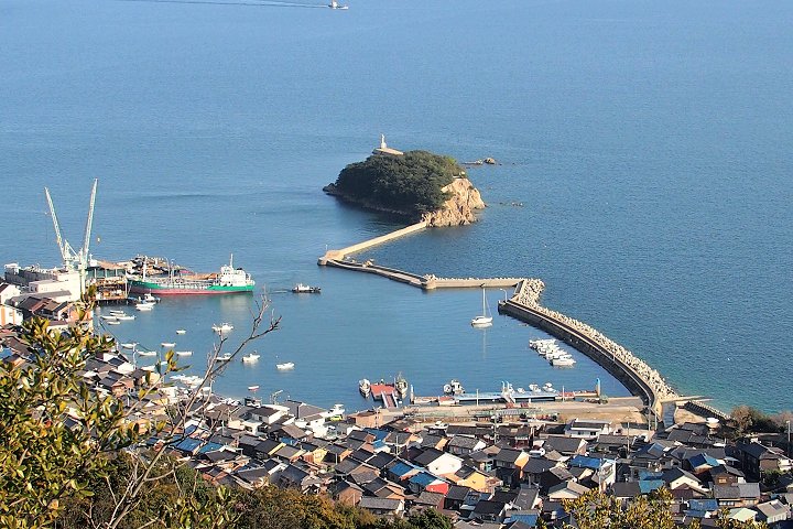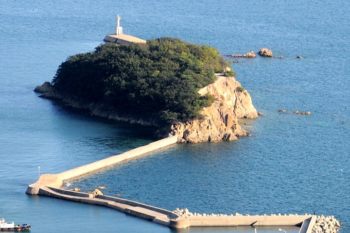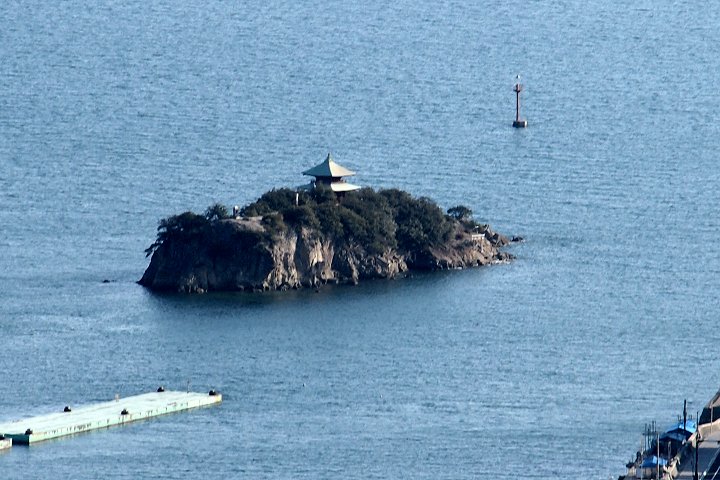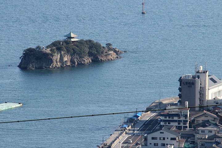 尾道市の東部、浦崎町の沖に浮かぶ観音堂です。普段は海の中にありますが、干潮になると歩いて渡ることができます。近年、尾道のモンサンミッシェルと呼ばれるようになってきました。