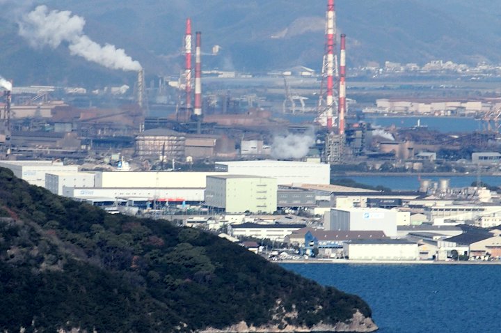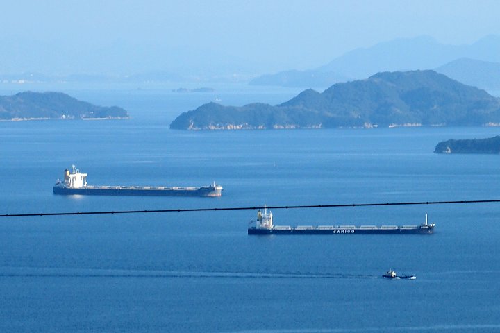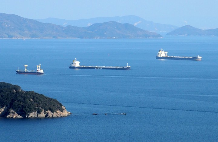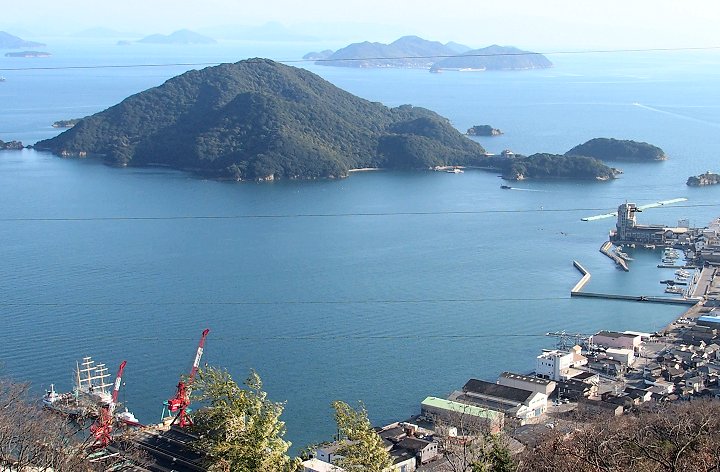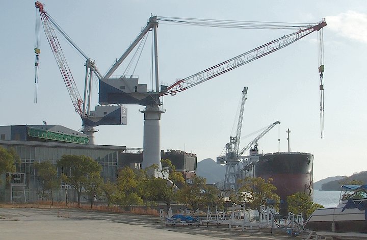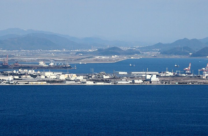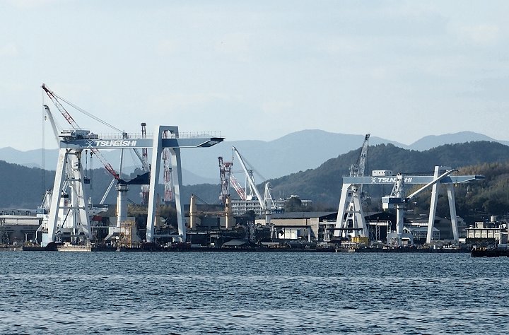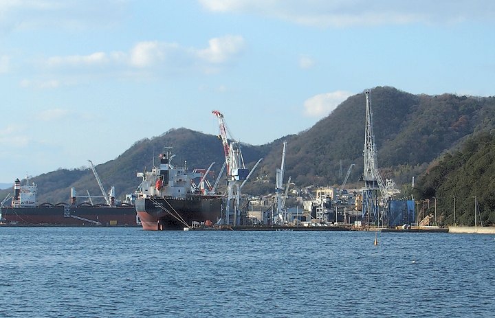 内海大橋、常石造船を、まずパチリ。常石造船の後方が「眺洋山」ですねぇ〜