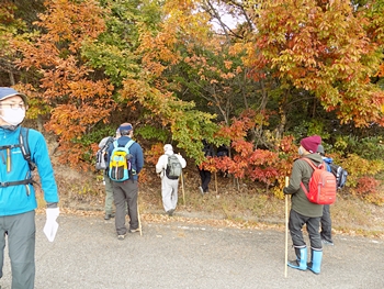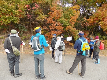 11:00少し前に、山田街道と鞆の浦スカイラインが交錯します場所に戻りまして、いよいよ探索スタートですけど、リーダーより資料で事前説明となりました。