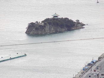 境内からは、穏やかな瀬戸内を眺望できますけど、曇天ですから今一の景観ですねぇ(^-^)//"