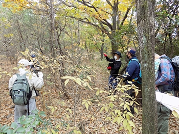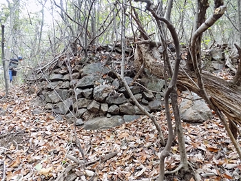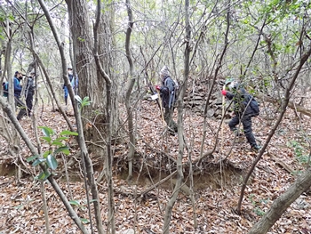 またリーダーが立ち止まり説明です。この辺が曲輪跡の最西端なのかも…