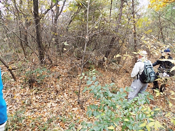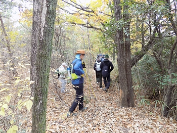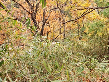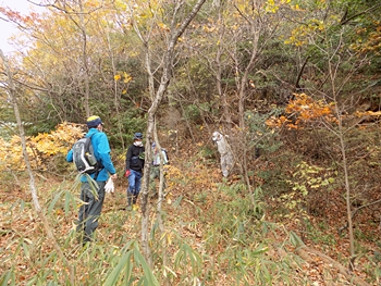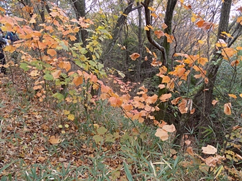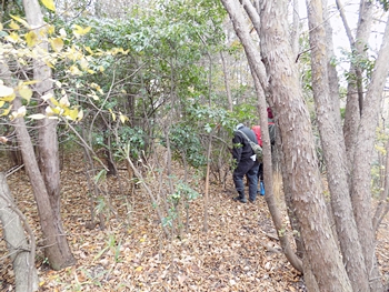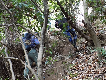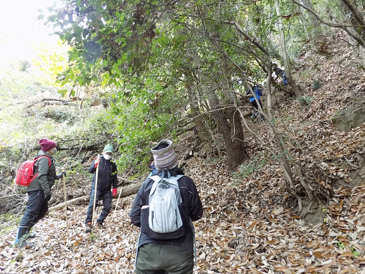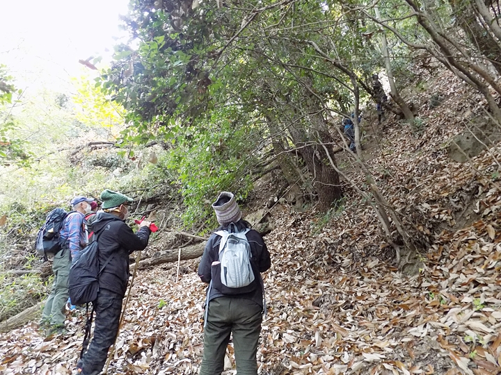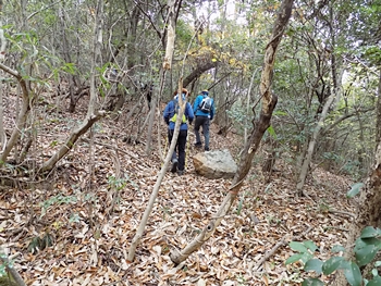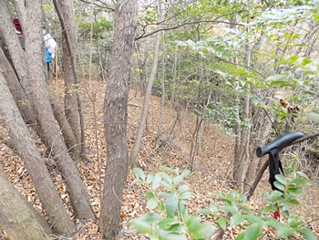 復路での竹林では、イノシシの疾走音を耳にすることも無く通過です。そして、難所の斜面上り・下りの箇所へと到着です(^-^)