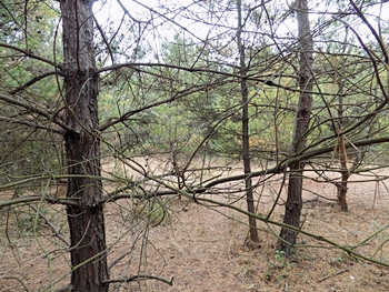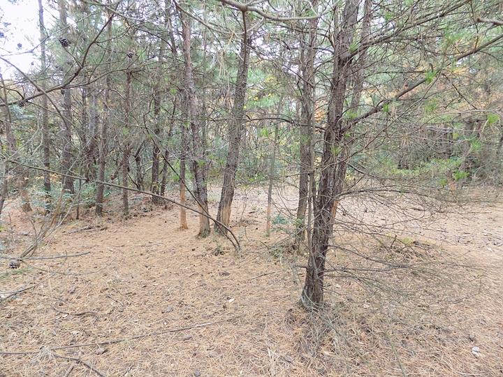 これは、近年、人の手で平坦地にされました感じが…何かの工事に伴い、資材置き場か何かの使用目的で、周辺の樹木を伐採し平坦地にされましたのかも…近くに道路が見えましたから、そんな感じが…