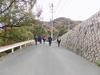 山城跡の探索が終わりますと、また上がって来ました山田街道を逆戻りでの下山です。往路での難所をまたクリアしなければなりませんけど、さて、どぅなりますか…